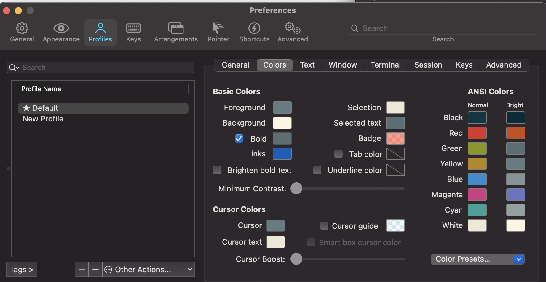 (1)Preferences - Profiles - color 으로 들어간다